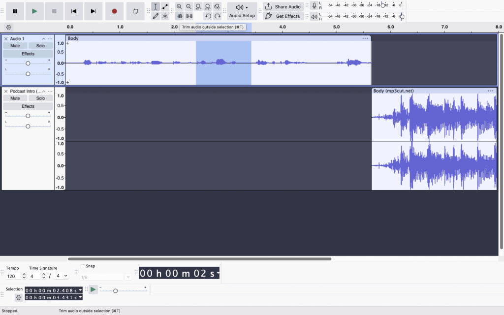 However, I also struggled with trimming the audio to the desired length. Instead of adjusting small parts, I keptdeleting the errors and re-recording repeatedly. This process made me a bit stressed as I was working under time pressure, though it did not add extra production time.